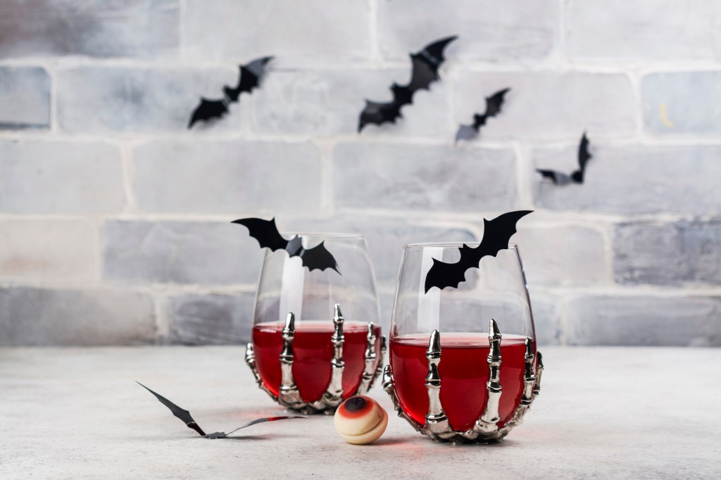 Optional: Gummy spiders, gummy worms, and gummy bugs to adorn glasses, eyeball ice cubes look cool floating in the punch.